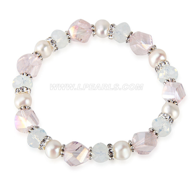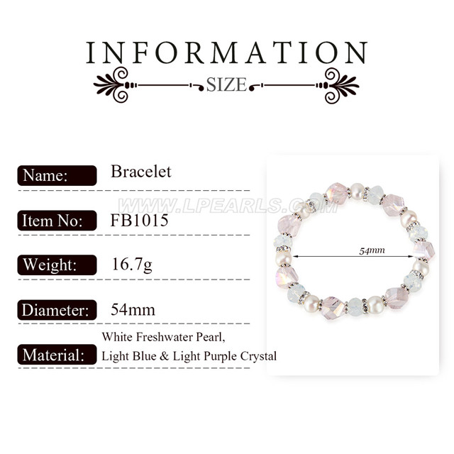 Material: white freshwater pearl, light blue and light purple crystal