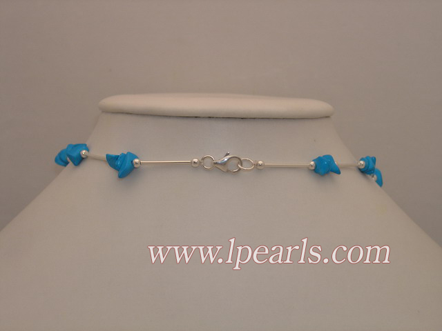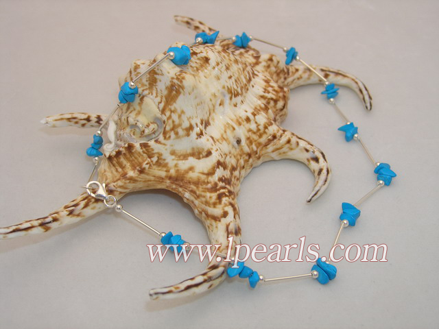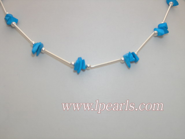 Sterling TIN-CUP necklace with blue turquoise;Consists of free form blue turquoise, threaded through sterling silver pipes and beads. The length is 16", 18", 20", as your selection; weight is 10g