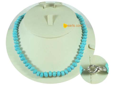 wholesale pearl jewelry: round and flat blue turquoise necklace